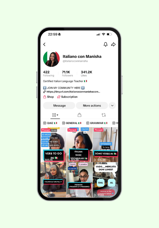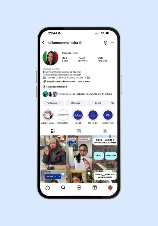 My name is Manisha, and I’m the founder of Italiano con Manisha. I’m a Certified Italian Language Teacher, born and raised in the beautiful city of Modena, in northern Italy.