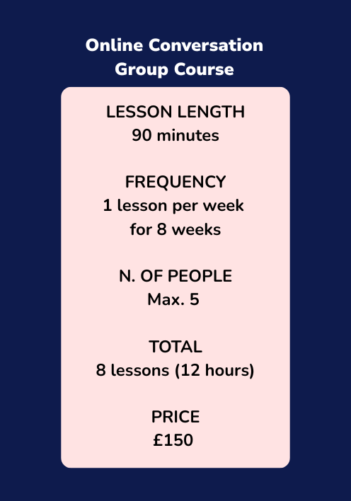 Do you already know some Italian but wish you could speak it with confidence? Our Conversation Group Courses are designed to help you do exactly that. In a supportive, small-group environment (maximum of 5 students per class), you’ll practise real-life communication through lively discussions, role-plays, and cultural topics.